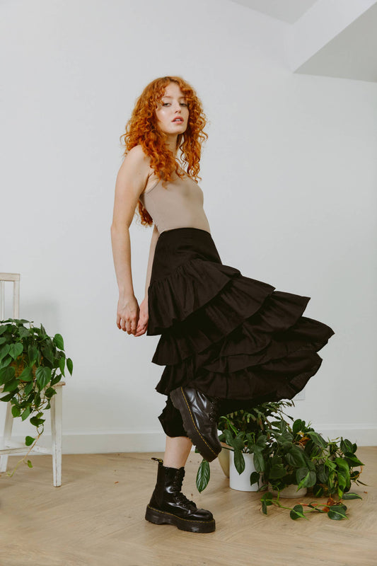Cascading Ruffles Midi Skirt