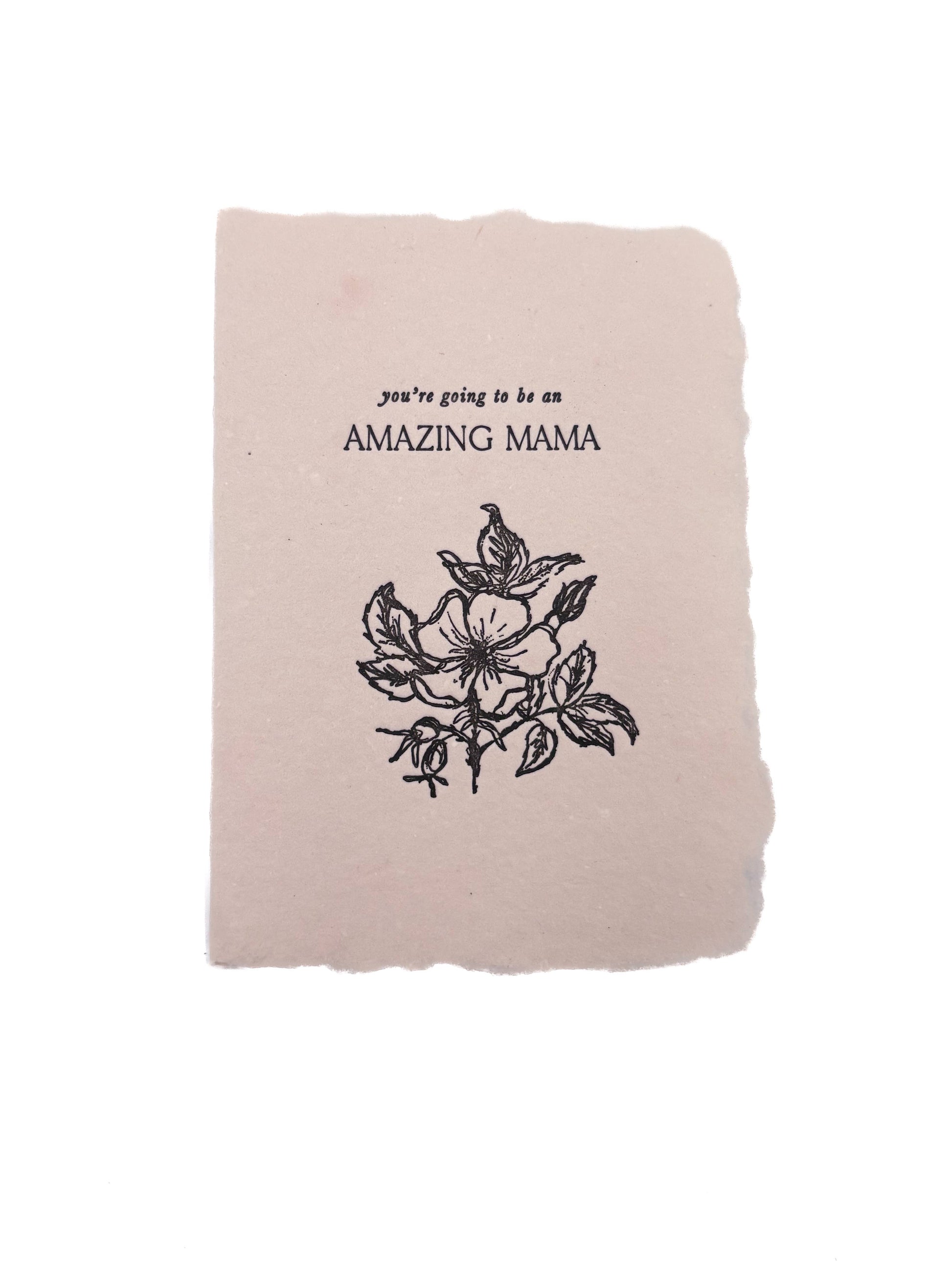 Card features an illustration of a rose and reads "you're going to be an amazing mama".