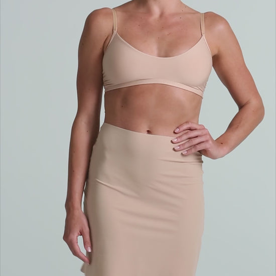 Commando's half slip is one of commando's go-to garments for a flattering finish. Layer under dresses or skirts for extra coverage or to prevent wear on delicate fabrics. Made from a luxe European fabric that prevents static, and constructed with a patented weighted hem to ensure a smooth, fashionable fit without creep-ups or discomfort.