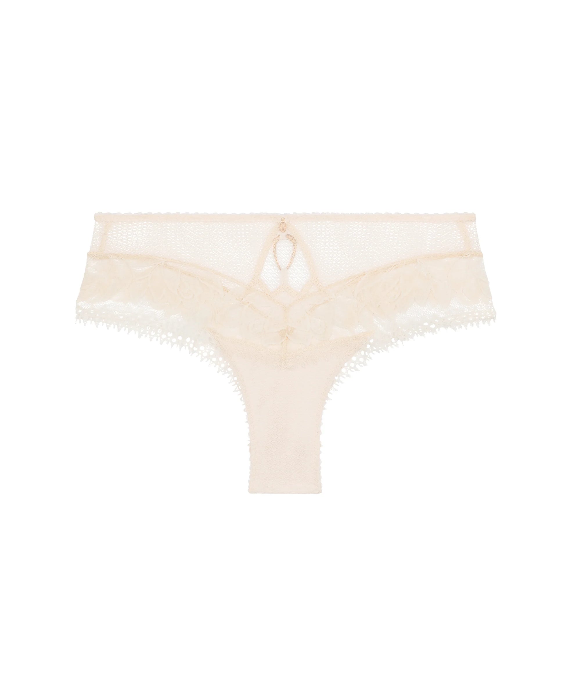 Adorning feminine curves with delicate lace and sensual patterned mesh, Aubade's Flawless Love shorties provide good coverage with the ultimate in comfort and sexiness. Cut slightly high at the back to show off the shape of the buttocks, they highlight the small of the back with a decidedly contemporary gold detail.
