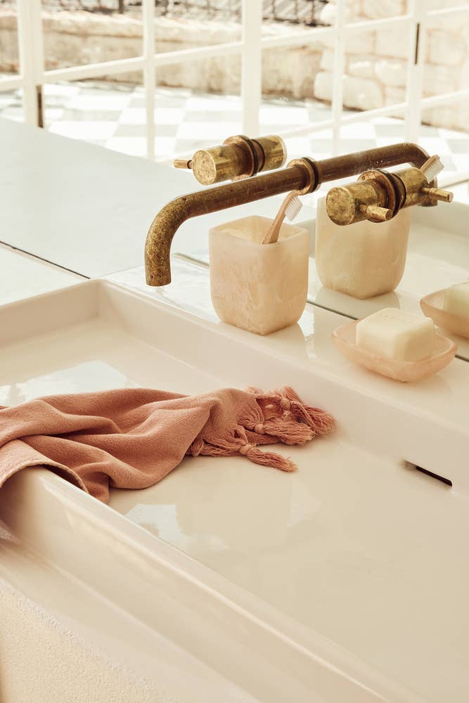 The Flow Resin Soap Dish is distinctive and organic with its curved lines and marble finish. Each soap dish is handmade and no two patterns are the same.