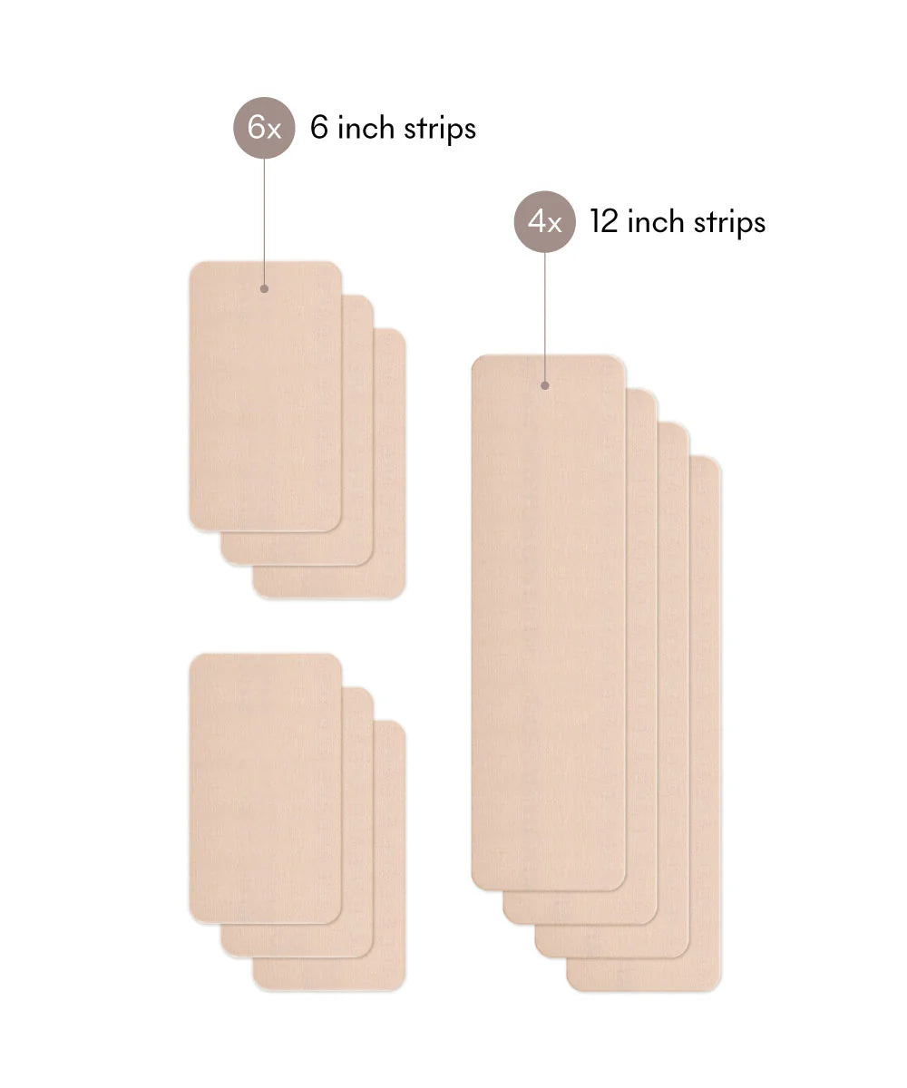 - Includes 4 x 12in strips and 6 x 6in strips (3in wide tape)