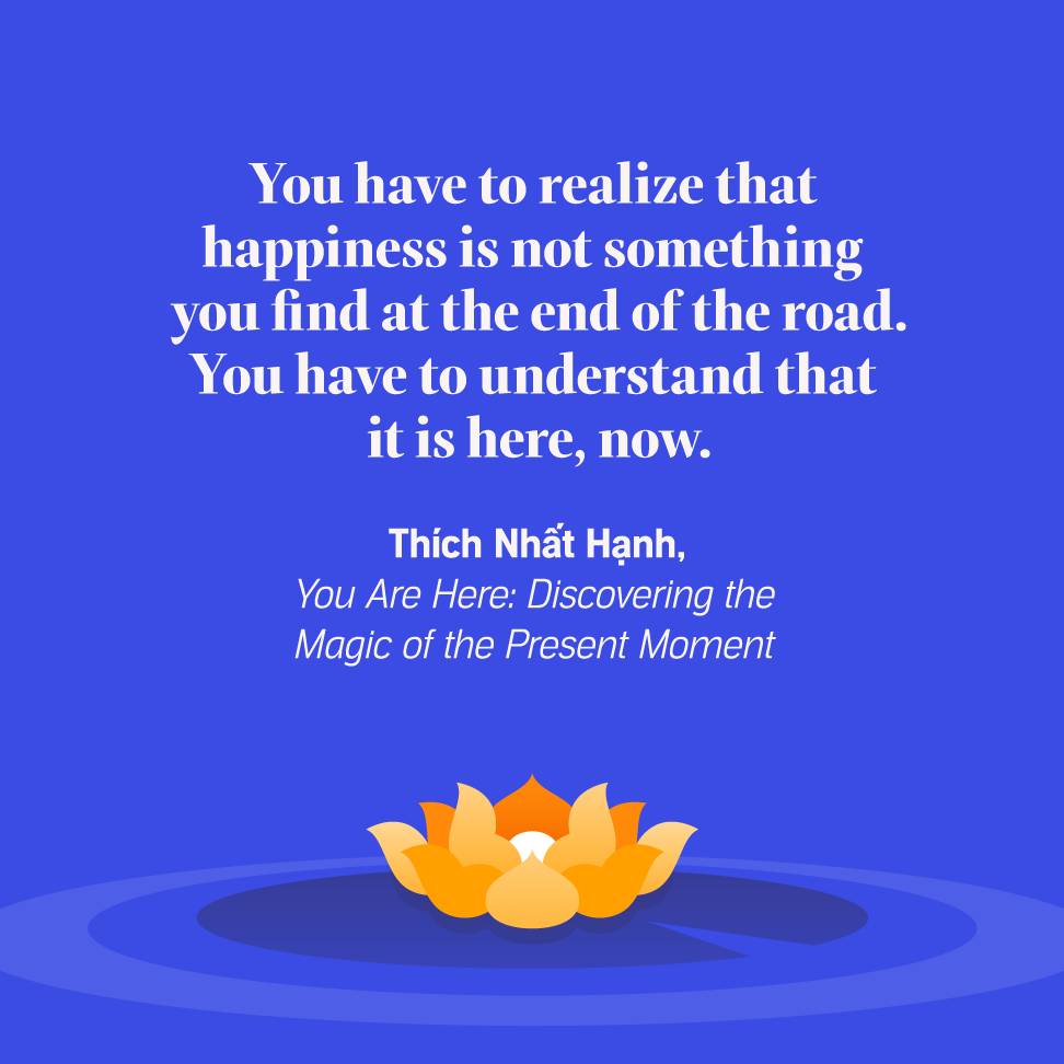 Based on a retreat that Thich Nhat Hanh led for Westerners, You Are Here offers a range of effective practices for cultivating mindfulness and staying in the present moment--including awareness of breathing and walking, deep listening, and skillful speech. These teachings will empower you to witness the wonder of life and transform your suffering, both within and outside you, into compassion, tenderness, and peace. As Thich Nhat Hanh declares, "the energy of mindfulness is the energy of the Buddha, and it can be produced by anybody." It is as simple as breathing in and breathing out.